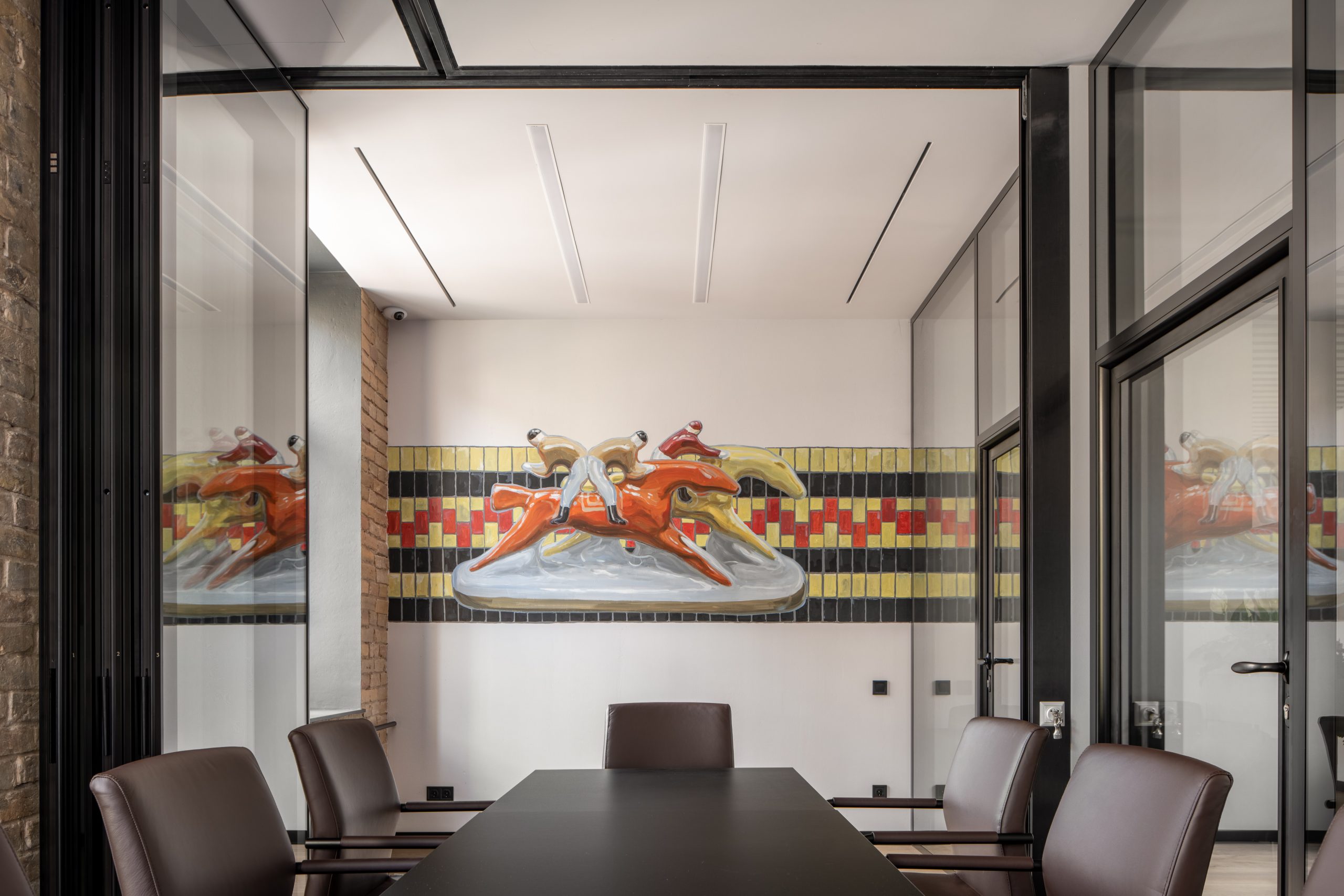 The palette is deliberately restrained: timber, soft neutrals and selected colour accents. This allows artwork, books and the everyday life of a modern workplace to animate the interior without creating visual noise. It’s a considered example of modern office interior design that supports productivity and well-being rather than distracting from it.